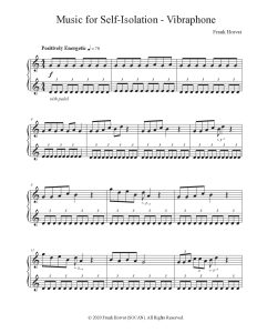 Learn more about this composition. Sheet Music Music for Self-Isolation – Vibraphone – Sheet Music Was $15 Sale CAD British Pound (£) Canadian Dollar ($) Euro (€) United States Dollar ($) Solo vibraphone composition from the Music For Self-Isolation suite by Frank Horvat.Purchased PDFs will be sent to the email address provided at checkout within 1–3 days of your purchase.PDF Download: Score Quantity Enter an amount
